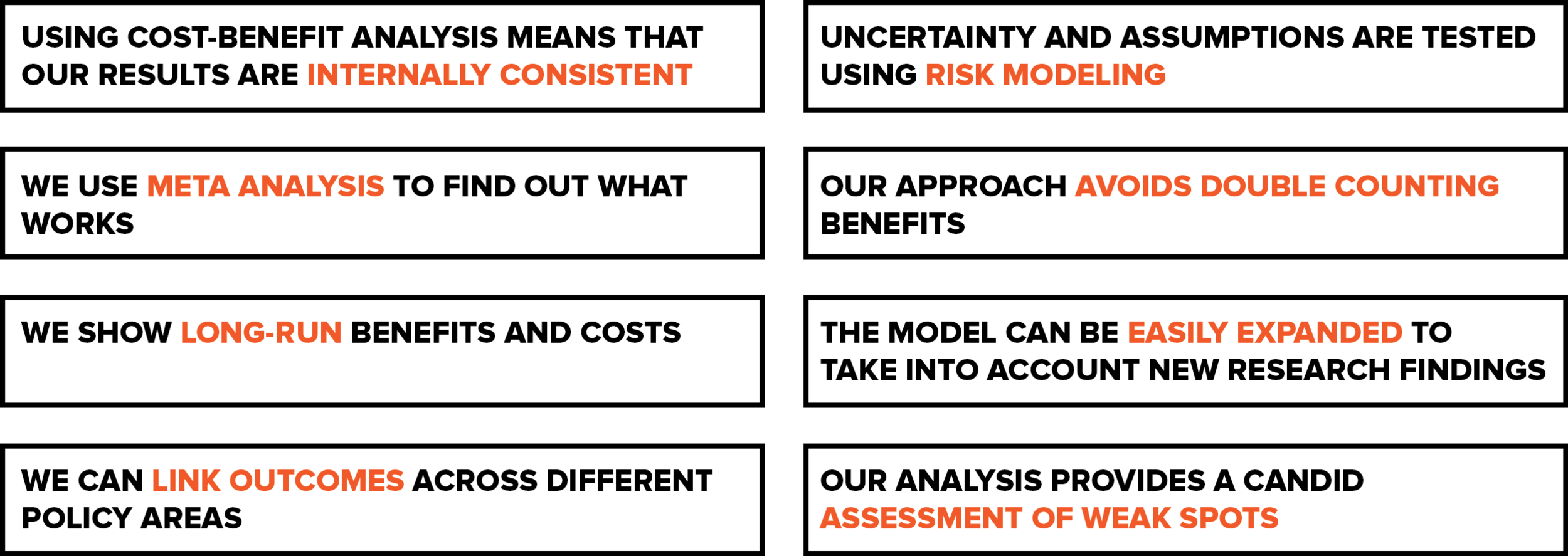 We seek to provide decision makers with the tools to invest their budgets wisely in programs and policies that deliver a positive return on investment.